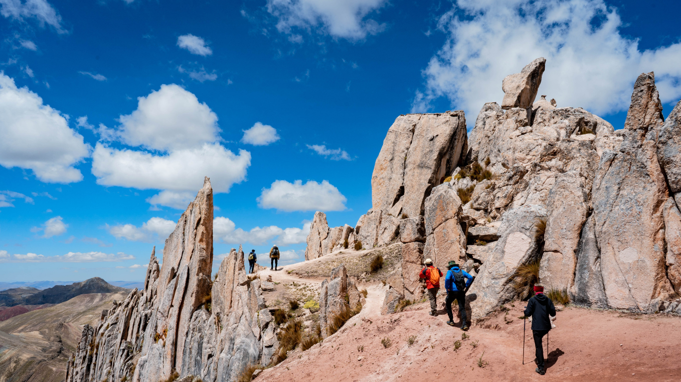 - El punto de partida de la caminata se encuentra a una altitud de 4,800 metros sobre el nivel del mar, desde donde emprenderemos una caminata de unos 30 minutos hasta llegar al primer mirador, situado a una altitud de 4,900 metros sobre el nivel del mar. Desde este punto, ya podremos apreciar la majestuosa Cordillera de Colores de Palcoyo. Previo al inicio de la caminata, nuestro guía nos proporcionará las instrucciones necesarias para garantizar una experiencia satisfactoria. Durante el recorrido, tendremos la oportunidad de admirar hermosas formaciones rocosas, y al llegar al mirador, seremos testigos de los espectaculares paisajes de este lugar mágico. Aquí, podrá capturar impresionantes fotografías junto a la Cordillera de Palcoyo y explorar el maravilloso Bosque de Piedras.